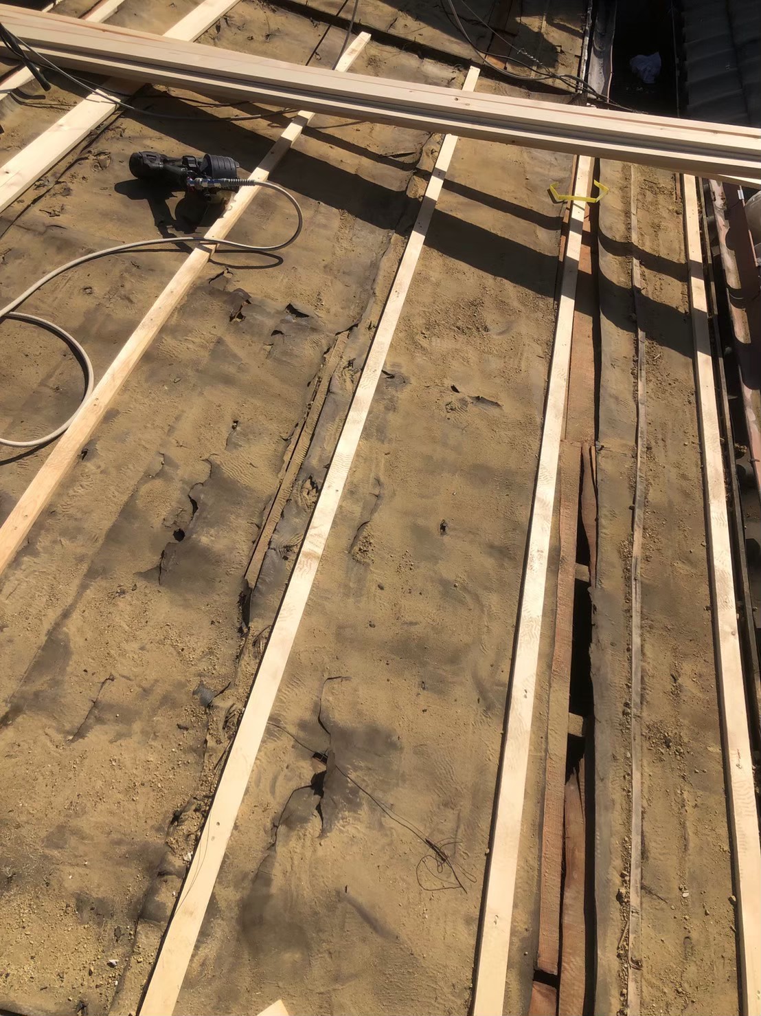 点検で状態を確認したところ、下地の傷みが進んでおり、このままでは大きなトラブルにつながる恐れがあるため、葺き替え工事をご提案する流れとなりました。